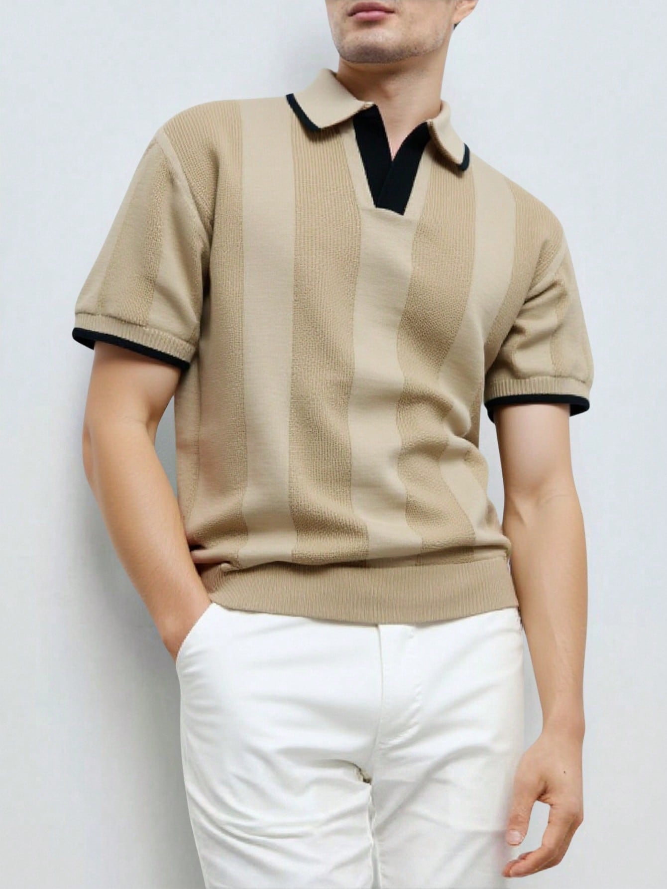 Get ready to add some pizzazz to your wardrobe with this Men's Solid Color Polo Collar Short Sleeve Casual Knitted Top. Perfect for a casual day out, this pink sweater offers a fitted look and comfortable fit, making you stand out from the crowd. Elevate your style game with this quirky and fun addition. (Warning: compliments may result!)